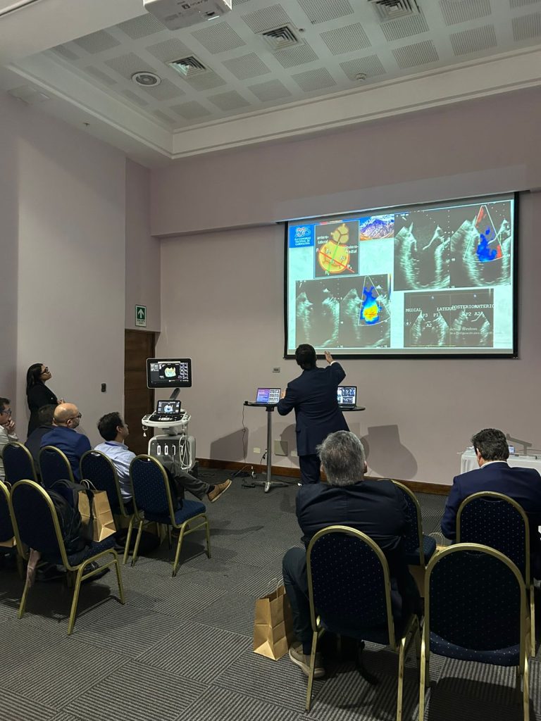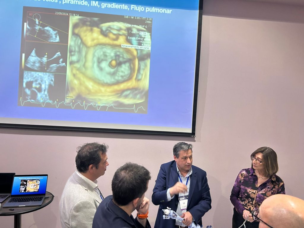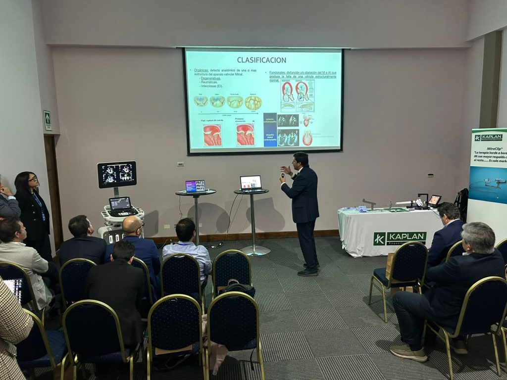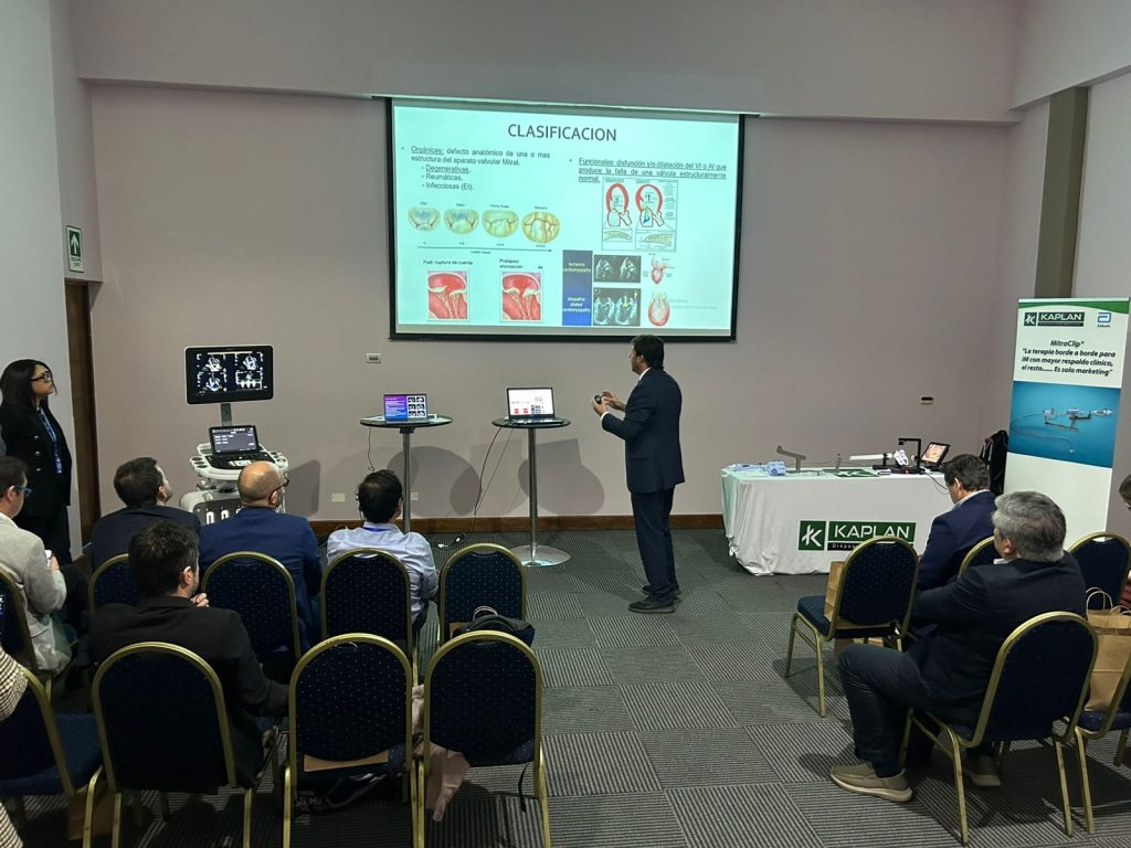 La demostración se centró en dos etapas. Primero, se realizó una revisión sobre la toma de imágenes necesarias para evaluar a cada paciente. Posteriormente, se mostró el funcionamiento del dispositivo MitraClip en tiempo real, lo que permitió observar con claridad su aplicación y beneficios clínicos. Además, los especialistas respondieron consultas y aclararon dudas, lo que generó una interacción muy enriquecedora con los participantes.