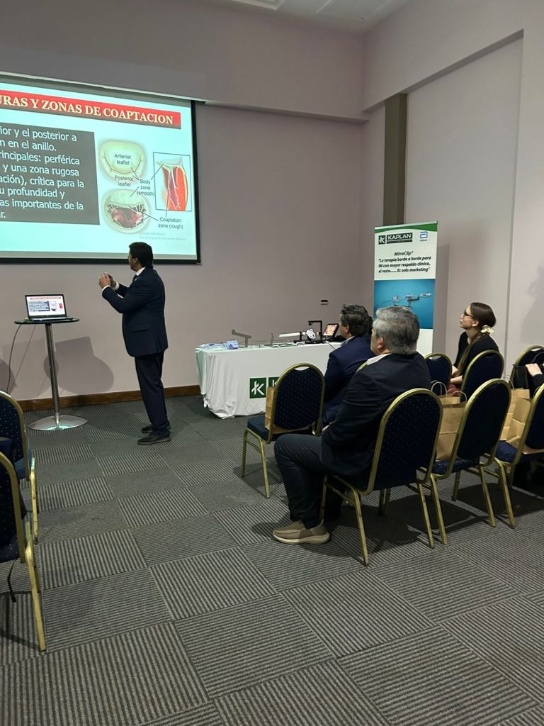 Durante el encuentro, Kaplan Chile tuvo la oportunidad de presentar una demostración del dispositivo MitraClip, tecnología utilizada en procedimientos cardíacos mínimamente invasivos. Esta instancia fue dirigida por el Dr. Rodrigo Álvarez, el Dr. Walter García y la participación destacada del Dr. Reinaldo Venegas, reconocidos profesionales con amplia experiencia en intervencionismo cardiovascular. Gracias a su participación, los asistentes pudieron conocer de manera práctica cómo este dispositivo mejora el tratamiento de pacientes con insuficiencia mitral.